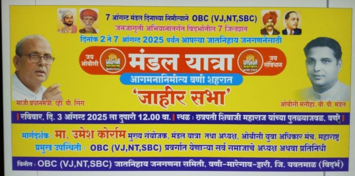 HomeUncategorizedओबीसीच्या जातनिहाय जनगणनेसाठी निघालेल्या मंडल यात्रेचे ३ ऑगस्ट रोजी वणी शहरात स्वागत