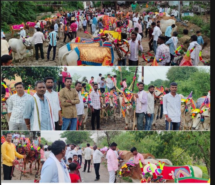 संध्याकाळी गावातून सर्व  बैल जोड्या गावाबाहेरील हनुमान मंदिराच्या प्रांगणात एकत्रित आल्या व नंतर मिरवणूक काढण्यात आली. या वेळी गावकरी  “हर बोला हर हर हर हर महादेव” अशा जयघोषांनी परिसर दुमदुमून टाकत होते. पदावली भजनाचा देखील सुंदर कार्यक्रम झाला. महिलांनी पारंपरिक पद्धतीने बैलांची ओवाळणी केली.