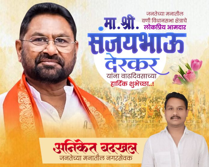 सर्वसामान्यांच्या प्रश्नांची तीक्ष्ण तिळकी, विकासाची खणखणीत चाल! म्हणजे वणी विधानसभेचे लाडके लोकप्रिय आमदार मा. संजयजी देरकर साहेब, यांना वाढदिवस कोटी कोटी शुभेच्छा