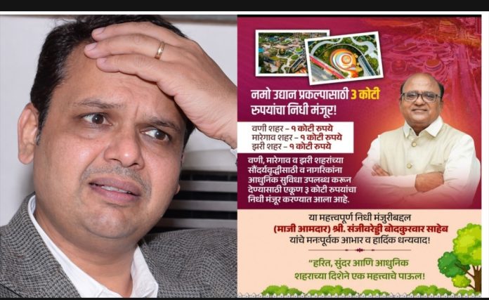 वणी:- वणी, मारेगाव आणि झरी येथे “नमो उद्यान” योजनेसाठी प्रत्येकी ₹१ कोटी असा एकूण ₹३ कोटी निधी राज्य शासनाने मंजूर केला. योजना राज्य शासनाची, निधी शासनाचा आणि अंमलबजावणी प्रशासनाकडून — हे सर्व स्पष्ट असताना माजी आमदार बोदकुरवार कडून या निर्णयाचे श्रेय घेण्याचा आटापिटा सुरू असल्याची चर्चा रंगली आहे. ही योजना राज्य शासनाची असून स्व प्रसिद्धीसाठी हा लाजिरवाणा प्रयत्न केल्याने सर्वत्र टीकेचा सूर उमटत आल्याची चर्चा ऐकायला येत आहे. त्यामुळे भाजपची प्रतिमा चांगलीच मल्लिन होत असल्याने वरिष्ठांनी अश्या प्रकारावर बोदकुरवरांचे चांगलेच कान टोचल्याचे बोलल्या जात आहे.